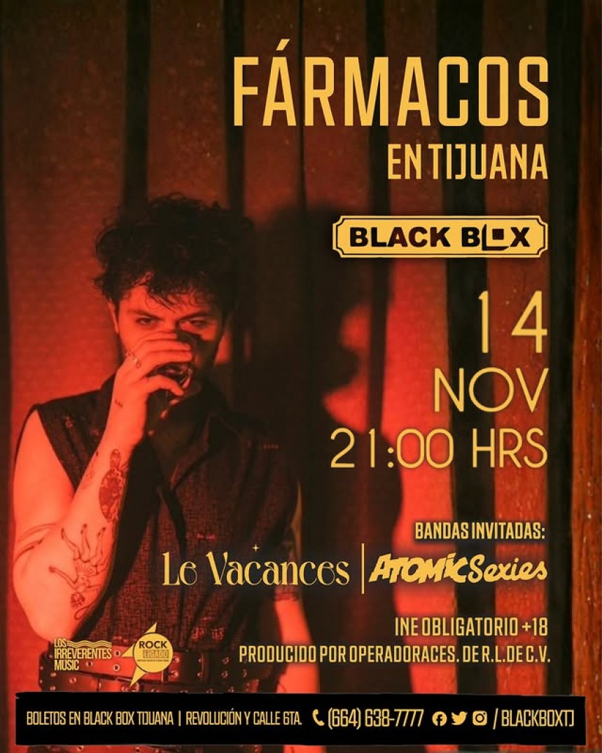 Le Vacances será la banda encargada de abrir el show del chileno Fármacos en el Black Box Tijuana, uno de los foros más emblemáticos de la ciudad. La cita para esta imperdible combinación de indie sofisticado es el jueves 14 de noviembre de 2025. Esta es la oportunidad ideal para ver cómo el french touch de Tijuana se fusiona con el pop de Santiago en un venue que siempre apuesta por las propuestas frescas. ¡Los boletos ya están disponibles, así que no te quedes fuera!